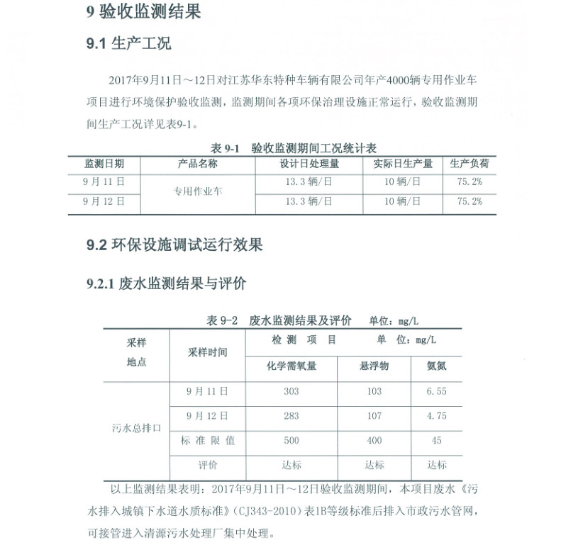 江蘇華東特種車輛有限公司年產(chǎn)4000輛專用作業(yè)車項(xiàng)目竣工環(huán)境保護(hù)驗(yàn)收?qǐng)?bào)告